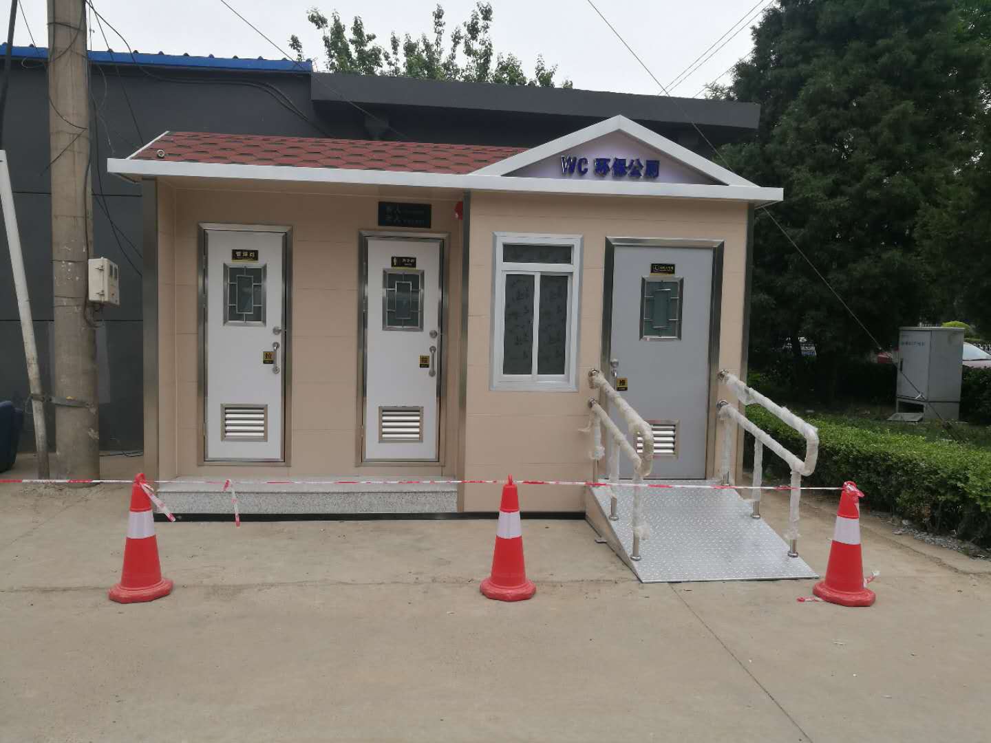 當(dāng)然,移動廁所不會受到任何工作環(huán)境的限制,其外部結(jié)構(gòu)特別輕。整個(gè)顏色在搭配過程中特別合理,適合安裝在一些不同的城市街道或大型公共場所,尤其便于移動。移動廁所是由鋼焊接而成的框架結(jié)構(gòu)。通常,底部用槽鋼或工字鋼焊接,立柱用方鋼制成。在墻體的基礎(chǔ)上,安裝墻體材料,包括彩鋼板、金屬雕版、鋁塑板、防腐木等??蚣苁綑C(jī)構(gòu)可以滿足提升要求,可以移動挪威進(jìn)行提升,因此被稱為移動廁所。本發(fā)明不受任何工作環(huán)境的限制,外觀結(jié)構(gòu)輕巧,配色合理,適用于城市街道、公園綠化、車站、碼頭、旅游景點(diǎn)、別墅區(qū)、新建住宅區(qū)、大型建筑工地、廣場、人口稠密的公共場所和繁華的商業(yè)街。移動式公廁具有可移動、可組合、便于運(yùn)輸?shù)膬?yōu)點(diǎn)。此外,移動廁所的內(nèi)部配置高于普通固定廁所。