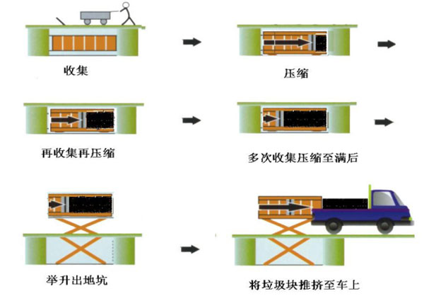 垃圾儲存、壓縮及寄存全部在地面以下,地面上沒有垃圾散落,對環(huán)境影響較??;垃圾壓縮后密度高,水份少,可避免汽車運(yùn)輸中的垃圾散落、污水滴漏現(xiàn)象,避免二次污染;