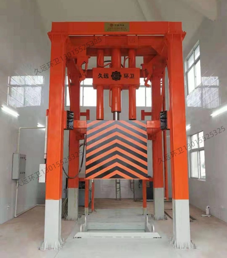 ◇采用垂直壓縮方式,壓縮力大,垃圾塊壓實(shí)密度大。