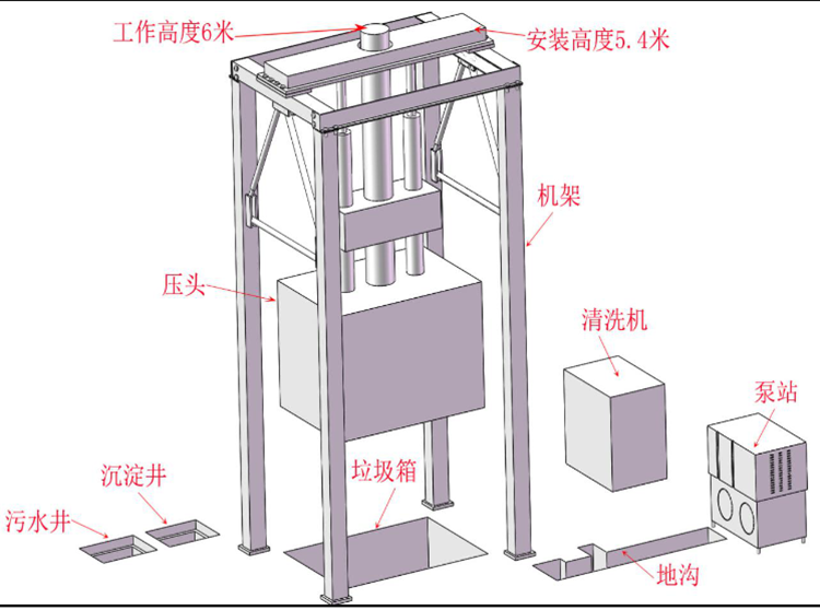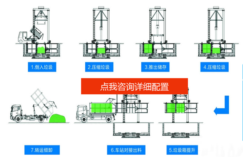 ◇設(shè)有垃圾儲存箱,適合集裝箱式散裝垃圾運輸車卸料,減少運輸費用。