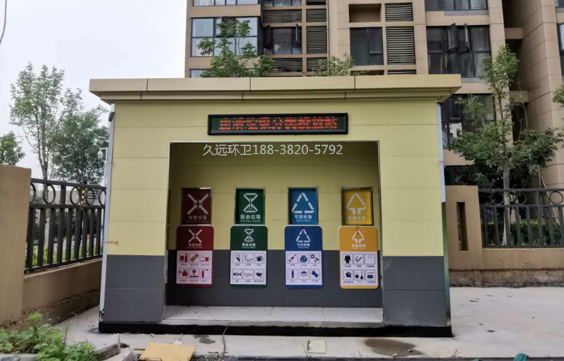 垃圾分類收集房廠家定制——久遠環(huán)衛(wèi)是一家集研發(fā)生產(chǎn)、銷售服務(wù)為一體的大型環(huán)衛(wèi)設(shè)備生產(chǎn)企業(yè),公司注冊資金5000萬元,占地面積50余畝,擁有現(xiàn)代化生產(chǎn)車間1萬余平方米,辦公面積1000余平方米,在職員工200多人,具有雄厚的技術(shù)及生產(chǎn)實力。 公司主要生產(chǎn)垃圾壓縮中轉(zhuǎn)站、垃圾分類收集房、環(huán)保移動公廁、各類垃圾桶果皮箱、環(huán)衛(wèi)工具箱、環(huán)衛(wèi)道班房、崗?fù)?、休閑座椅、等公共環(huán)衛(wèi)設(shè)施。